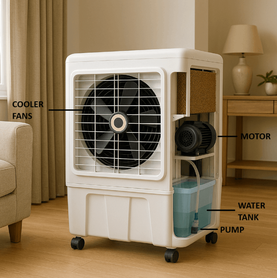An air cooler is an energy-efficient and eco-friendly cooling device designed to provide comfort by reducing the ambient temperature using the natural process of water evaporation in day-to-day life at homes, offices. Major electronic components in the air cooler are motor, pumps, motor controller, microcontroller, speed sensors, ultrasonic level detection. Ultrasonic level detector is used to detect if the water level is low in the tank. Motor controller is used to control motor speed in the fan and the pump. And speed sensor for the fan speed control.