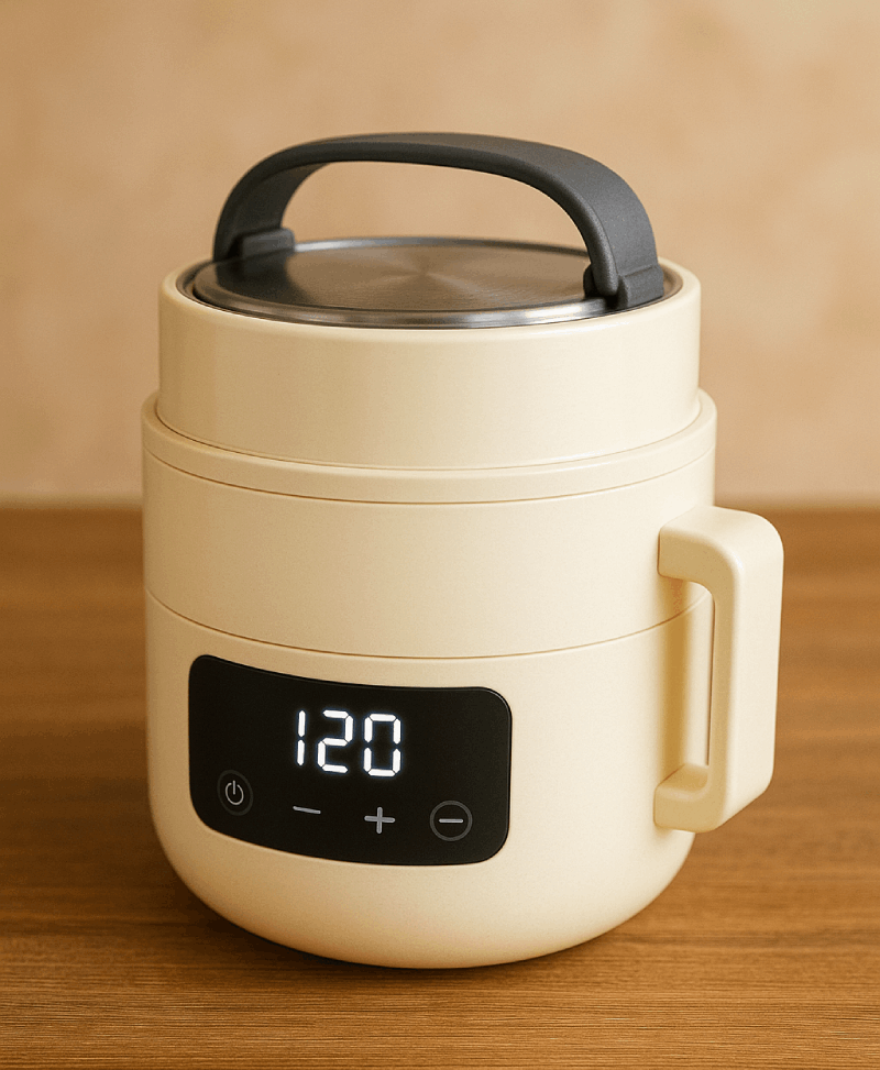 A Smart Tiffin is an innovative food container designed to keep meals warm, safe, and easily trackable. Smart tiffin has with in-built heating, allowing users to maintain their food at the desired temperature. The temperature display provides real-time information about the food’s heat level, ensuring it’s always ready to eat. With app connectivity, users can control heating functions and receive alerts directly from their smartphones. This combination of heating, monitoring, makes the Smart Tiffin ideal for modern lifestyles, providing convenience.